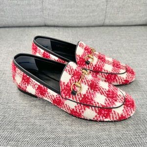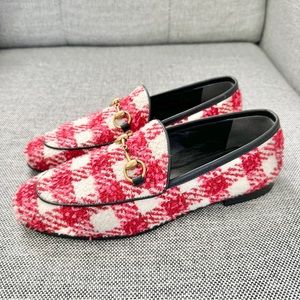 NEW Gucci Princetown Tweed Horsebit Loafers EU 36 US 6 Red and Pink Check