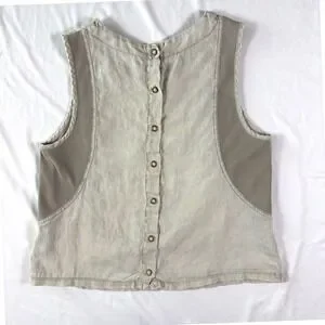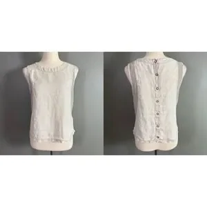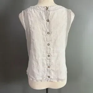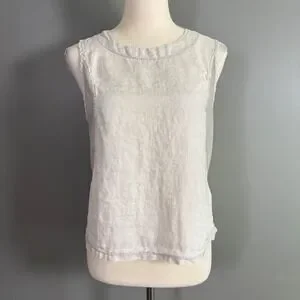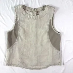 XCVI Womens S Linen Sleeveless Tank Top Mixed Media Layering Boho Neutral Clean