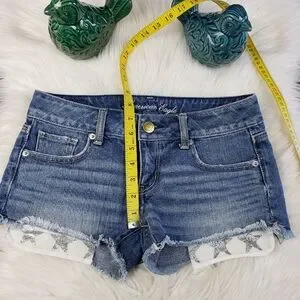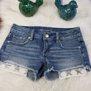 American Eagle sparkle star pocket denim shorts size 0