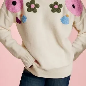 Elevate your style with this chic cream sweater, adorned with vibrant floral embroidery. Perfect for a cozy and fashionable look.