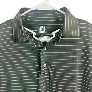 FootJoy Golf Polo Large Black with White Stripes West Lake - Athletic Fit