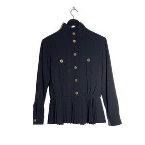 Club Monaco Black Military Style Jacket with Pleats and Gold Buttons size XS