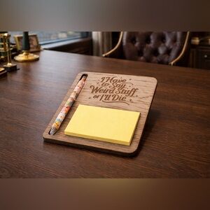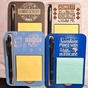 1-Handmade by me Wooden post-it note and pen desk holder with humorous sayings *Post-it note and pen NOT included