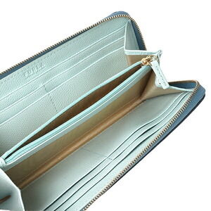 Furla Camellia Long Wallet Round Zipper Blue Multicolor