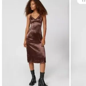 Urban Outfitters Chloe Chocolate Satin Slip Dress Lace Bust Crossover Back Sz L