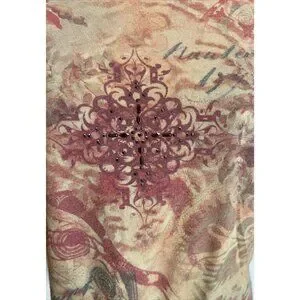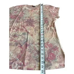 Yukiko Vintage Style Boho T-Shirt Rhinestone Embellishment & Floral Design XL