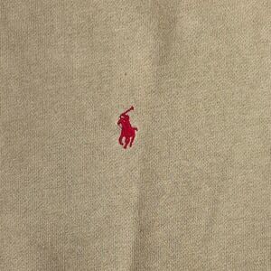 Keywords: Polo Ralph Lauren, sweatshirt, pullover, crew neck, tan, long sleeve, menswear, casual, classic, iconic, red pony logo, layering