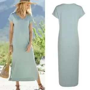 EUC Peruvian Connection Malibu Cotton Modal Jersey Knit Maxi T-Shirt Dress: Seafoam Green Blue Heather.