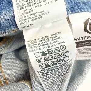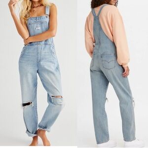 Levi’s Premium Vintage Denim Straight Leg Overalls Bright Light Wash Distressed