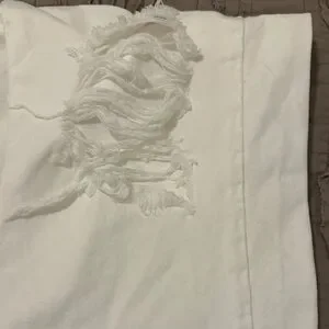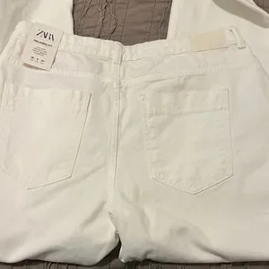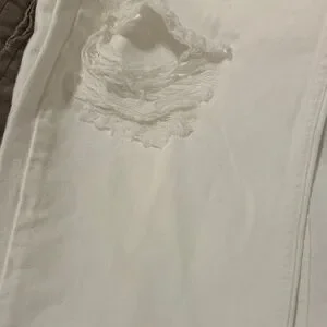 Chic white cropped jeans with a frayed hem. Perfect for a modern casual look.