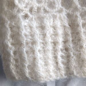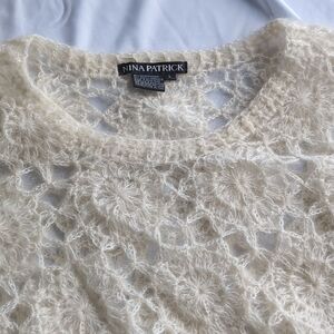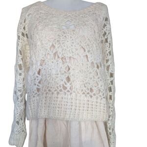 Cream Dainty Mandala Knit Mohair Textured Scoopneck Sweater L