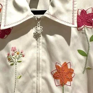 Alfred Dunner 90s Y2K Floral Pink White Zip Up Jacket Size 12 Cottagecore,