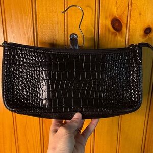Elegant black clutch with croc-embossed texture. Sleek and stylish design. Perfect for any occasion.