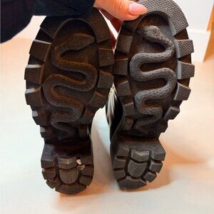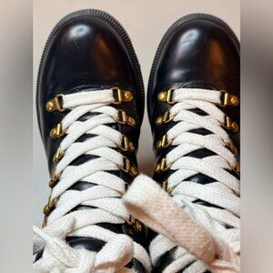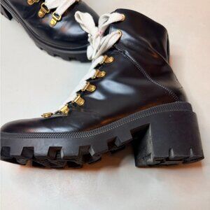 Gucci Black Leather Combat Ankle Boots | White Laces | Gold Accents | Size 7