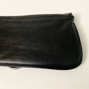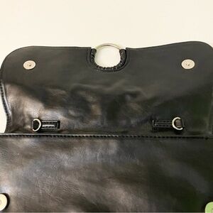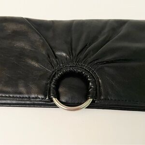 Vintage Spring Black Faux Leather Envelope Clutch Y2K Silver Ring Handbag