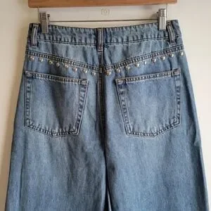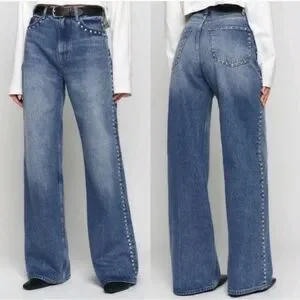 NWT HOUSE OF HARLOW 1960 Wide Leg High Waist Studded Blue Denim Jeans 6