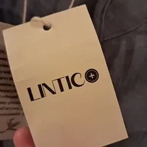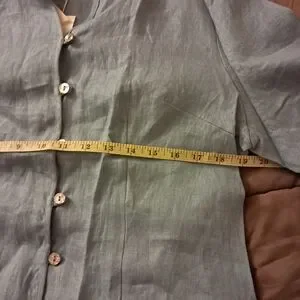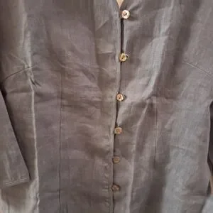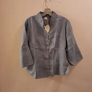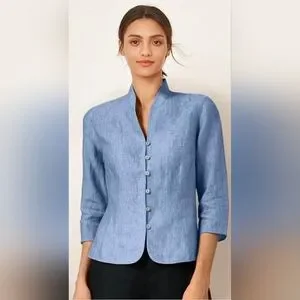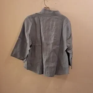 Lintico Top Women's Large L Blue Chambray Linen Fitted Office Career Coastal