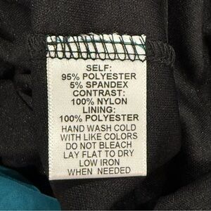 Chic teal dress with black lace sleeves. Perfect for elegant occasions. Flattering and stylish design.Secon pictures just for style