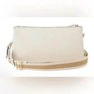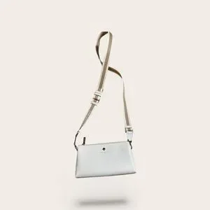 Elegant white crossbody bag. Features adjustable strap. Perfect for everyday use.