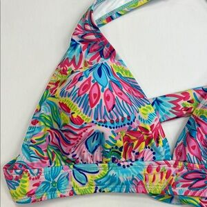 Make a splash with this vibrant floral halter bikini set. Featuring a colorful design, it's perfect for sunny beach days.