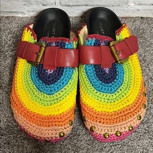 Kurt Geiger Ozark rainbow crochet clog mules