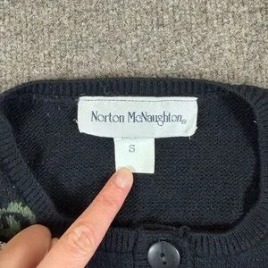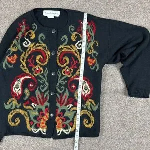 Vintage 90s Black Cardigan Sweater Women’s S Colorful Paisley Pattern Grannycore