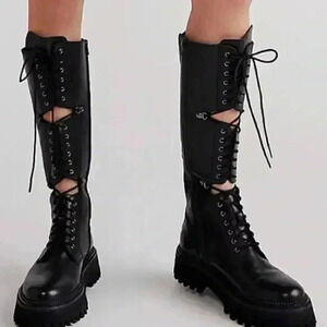 NEW Free People Miller Lace Up Boots Cutout Combat Tall Knee High EU 37.5 Size 7.5 and EU 38 Size 8