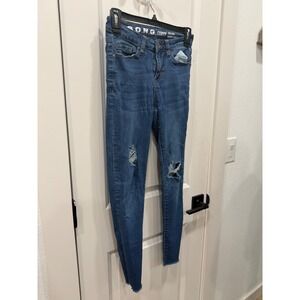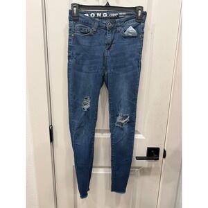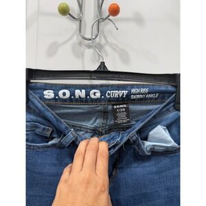 S.O.N.G. Curvy High Rise Skinny Ankle Jeans Distressed Ripped Raw Hem Blue 1/25