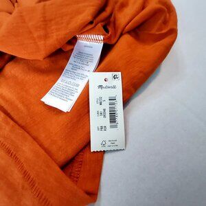 Designed with comfort and style in mind, this Madewell V-neck T-shirt offers a casual and relaxed fit. Crafted from lightweight fabric, it feels soft against the skin, ensuring ease of wear throughout the day. Its vibrant orange hue adds a pop of color, making it a versatile wardrobe essential.
