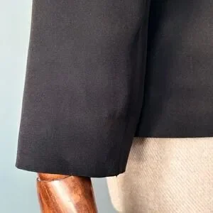 Designed with a longline silhouette, pleated back to accentuate the waist and curves, minimal shouler pads, and clean cuffs with no buttons. Labeled Paris–New York, this piece reflects the brand's signature eveningwear aesthetic.