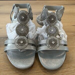 Stylish silver sandals with sparkling embellishments. Perfect for adding a touch of glamour to any outfit. Never Worn!