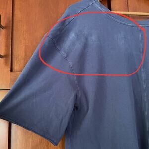 Condition: this item is new without tags, but has some lighter areas on the front and back where the dye is irregular, see pictures. There is no outer logo.