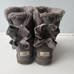 UGG Gray Velvet Bailey Bow Boots