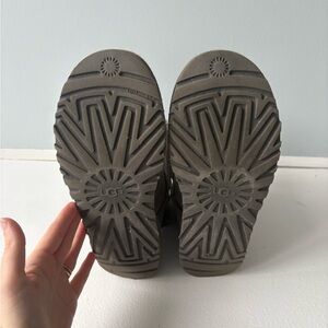 UGG boots with elegant bow accents. Soft and warm in charcoal.