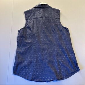 Women Medium Blue Chambray Button-Down Sleeveless Shirt Top Polka Dot cotton