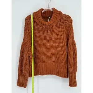Free People Cowl Neck Chunky Knit Sweater Rust Orange Womens Sz M