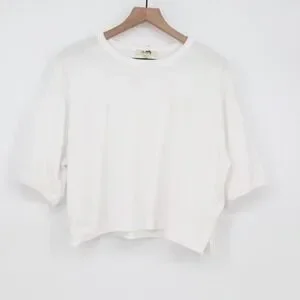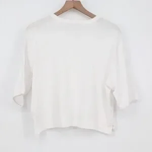 Madewell Crop T-Shirt Women Medium White Cotton Short Sleeve Side Slit Crew Neck