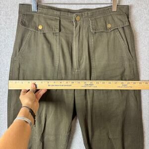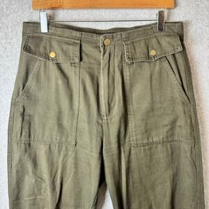 Banana Republic Baker Pants Women's 10 Olive Green Utility Cargo Barrel Fatigue Back & Front Flap Pockets With Snap Closure