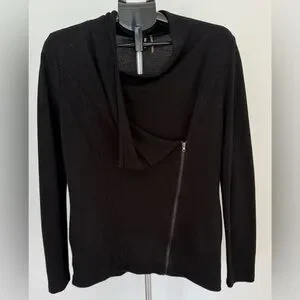 This H by Bordeaux black sweat jacket (Size Small) features a stylish draped zipper front design — the perfect mix of comfort and modern edge.