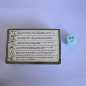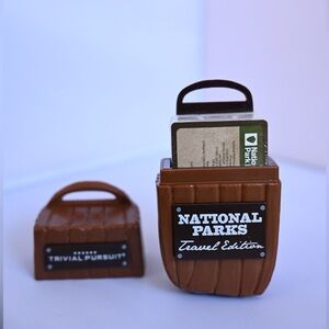 New Trivial Pursuit National Parks - Travel Edition from 2016 new in the packaging! Complete with carabiner. Cards still in the packing and has a hidden compartment at the bottom for the die.