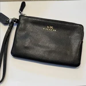 EUC Coach Midnight Black Wristlet with Gold Accents