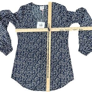 CAbi Blue White Purple Love Amore Balloon Sleeve Te Amo Blouse size XS NEW Tags