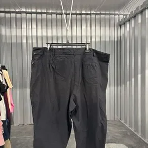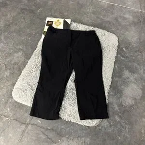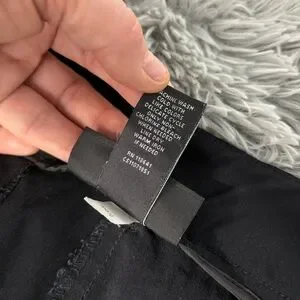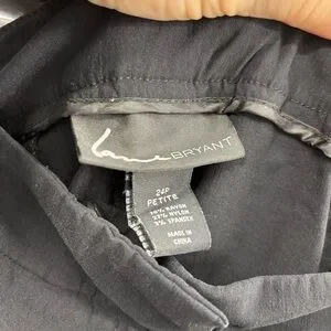 AI is wrong. This is. Not a top. Lane Bryant Petite black dress pants are women’s size 24P. The pants are very stretchy and look comfortable. They have belt loops, 2 front slash pockets and one back pocket. The front pockets have a small loop/strap atttached to a button. Made in China of 70% rayon 27% nylon 3% spandex. Waist 44” and stretches to about 48”. Rise 13” and inseam about 27”.