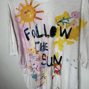 Natural Life Follow The Sun Oversized Artsy Shirt Tee Womens One Size Boho *FLAW