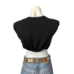 Hansen + Gretel Black Crop Top Medium Padded Shoulder Jersey Festival $128 NEWno Tag