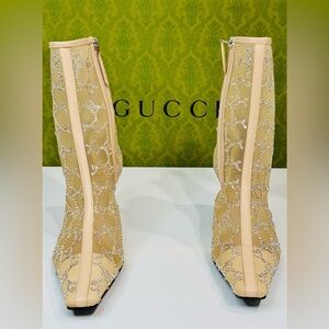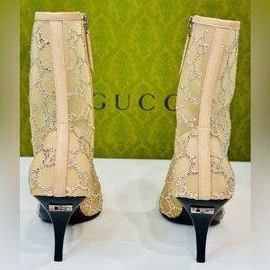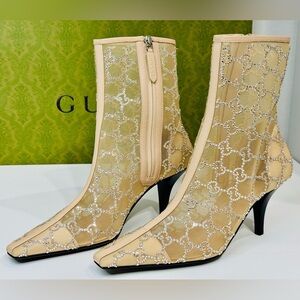 New! Gucci Demi Crystal Mesh Ankle Boots Beige Mid Heel Size EU-38.5 RETAIL$2950