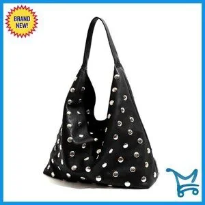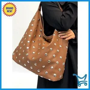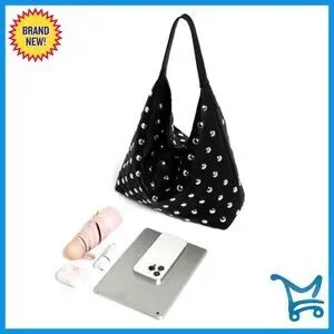 Studded Vegan Leather Hobo Shoulder Bag Tote Purse Large Capacity