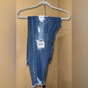 🌼 RUE 21 Curvy High-Rise ankle Jeggings Ripped Dark Blue Skinny Jeans. Size 16.🌼