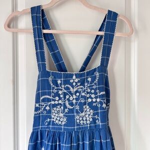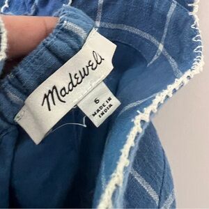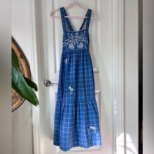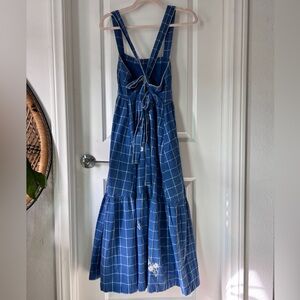 Madewell Blue Floral Embroidered Cicely Tiered Midi Dress in Plaid 100% Cotton size 6