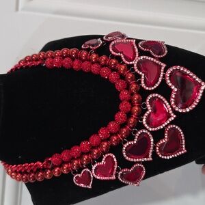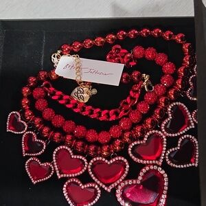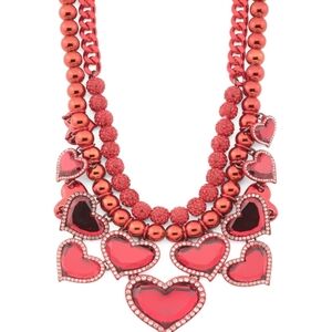 ❤️🔹️Betsey Johnson🔹️ Love Spell Red Heart Statement layered Bib 16" Necklace